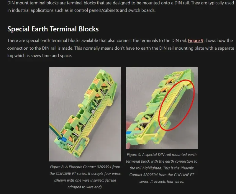 Added info on DIN mounted terminal blocks to the Terminal Blocks page.