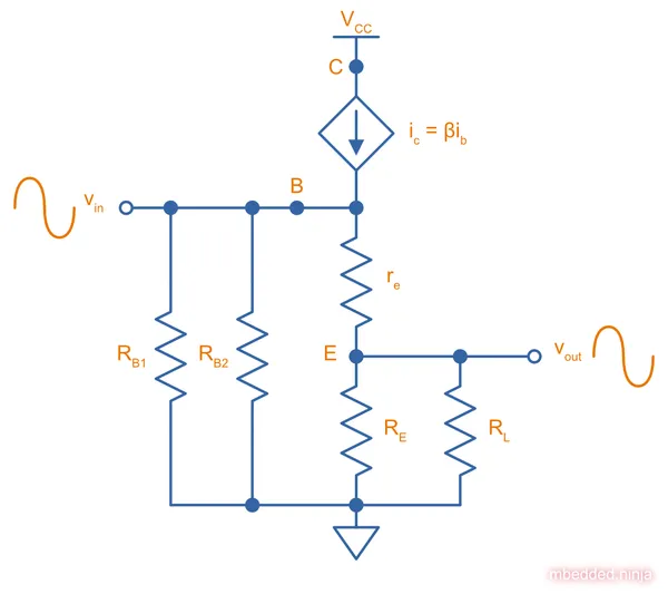 Kenneth A. Kuhn. Common-Collector Amplifier Design. Retrieved 2022-09-03, from https://www.kennethkuhn.com/students/ee351/bjt_cc_amplifier_design.pdf. ↩ ↩2