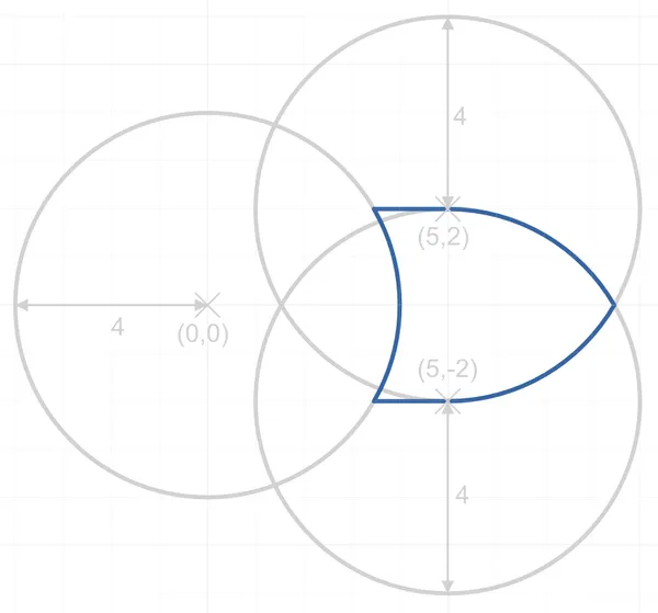 The OR gate be drawn using three equal diameter circles placed on a grid as shown in the below image. Segments of the circles perimeters are taken along with the addition of two horizontal line sections to form the classic OR gate shape2.