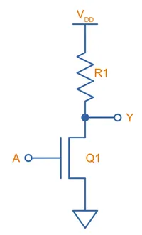 A NMOS inverter is simply made from a N-channel MOSFET and a resistor, as shown below:
