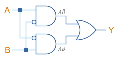 A 2-input XOR gate (exclusive OR) only outputs TRUE if one and only one of it’s inputs is also TRUE. For many gate construction technologies, the XOR gate is the most complex primitive gate to build.