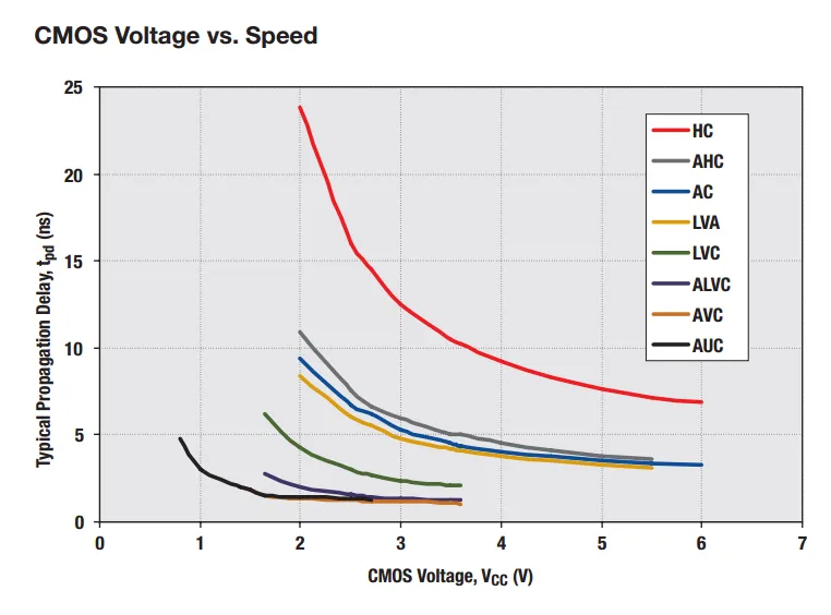 Logic families are sorted in alphabetical order. Take note that there may be a low-voltage equivalent of many signal types under the prefix “LV” (e.g. TTL and LVTTL).