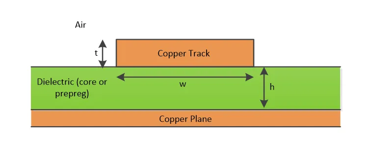 To calculate the impedance of a microstrip, we need to know the following parameters of the PCB: