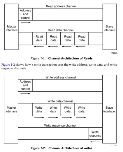 The Advanced eXtensible Interface (AXI) bus is part of the ARM AMBA, a family of open-standard on-chip microcontroller buses first introduced in 1996. The AXI bus was part of the third generation AMBA interface. It is designed for on-chip, high-speed interconnects (sub-micrometer to micrometer connection distance).