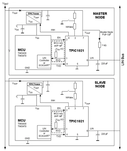LIN/SAE J2602 is a universal asynchronous receiver–transmitter (UART)–based, single–master, multiple–slave networking architecture originally developed for automotive sensor and actuator networking applications.