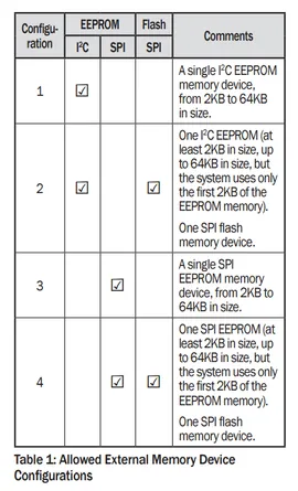 Because the way of writing SPI flash memory can very slightly between manufacturers (reads are all the same), a small function resides in the EEPROM that instructs the FT5000 how to correctly write to the device. Echelon provides three memory ICs which have been “qualified” to work with the FT5000. These are: