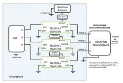 - Three phase, delta: 1 LISN on each phase (3 total).