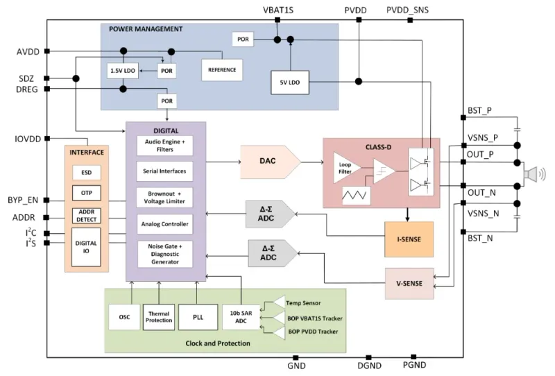Texas Instruments (2023, Mar). TAS2780 Digital Input Mono Class-D Audio Amplifier With Speaker IV Sense [datasheet]. Retrieved 2025-01-21, from https://www.ti.com/lit/ds/symlink/tas2780.pdf. ↩ ↩2