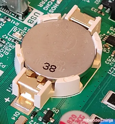 Coin cells are commonly used as backup batteries for real-time clocks (RTCs) on circuit boards. There are many PCB mount coin cell battery holders available on the market. This is a placeholder for the reference: fig-pcb-mount-cr1632-coin-cell-battery-holder shows a horizontal PCB mount CR1632 coin cell battery holder. You can also find vertical mount versions which don’t take up as much component area on the PCB at the expense of being taller.
