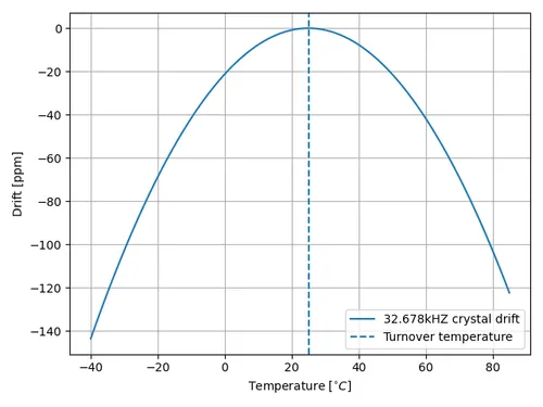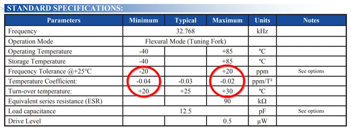 ST Microelectronics (2009, Jul). AN2971 Application note: Using the typical temperature characteristics of 32 KHz crystal to compensate the M41T83 and the M41T93 serial real-time clocks. Retrieved 2021-09-09, from https://www.st.com/resource/en/application_note/an2971-using-the-typical-temperature-characteristics-of-32-khz-crystal-to-compensate-the-m41t83-and-m41t93-serial-realtime-clocks—stmicroelectronics.pdf. ↩