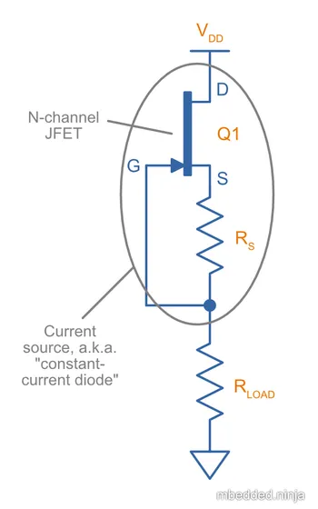 The constant-current diode (a.k.a JFET current source, current-limiting diode (CLD), or regulating diode1) is a very simple current source made from a JFET and optional resistor.