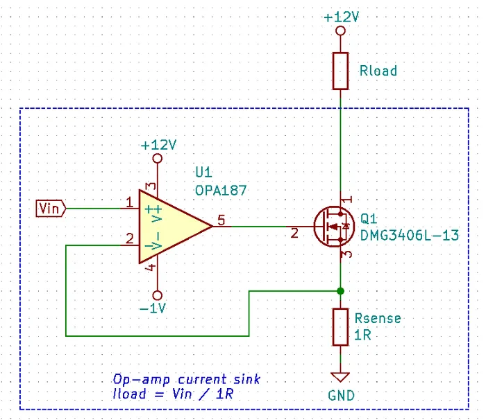- The op-amp is powered here with a slightly negative voltage rail on it’s pin. This is that the op-amp remains operational when you set it at low current levels. At low current levels, the voltages at and are very close to zero. Even rail-to-rail op-amps can have trouble performing well if the negative voltage rail was at .