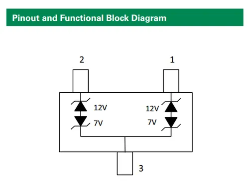 This low capacitance is achieved by adding a forward-biased general purpose diode in series with the usual reverse-biased TVS (zener-style diode). The schematic symbol for a low-capacitance TVS diode is shown below: