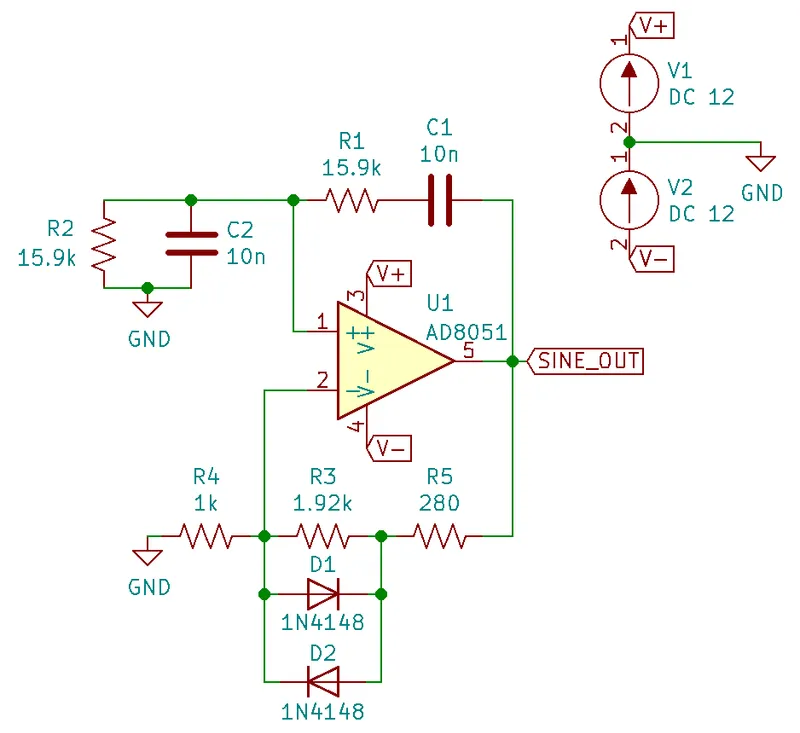 There is a problem with the above Wien Bridge oscillator circuits which limits them to the realm of theory only. It all comes back to the requirement that the Wien Bridge oscillator must have a loop gain of exactly 1 to function properly (Barkhausen stability criterion). If the gain is less than this, the oscillator will not start (or will stop if already started). If it is more than 1, the oscillator output will saturate and your sine wave output will start looking more like a square wave. Wien bridge oscillators typically need a non-linear component (a component which has a resistance which changes with applied voltage) to actively limit the loop gain and keep it at 1.