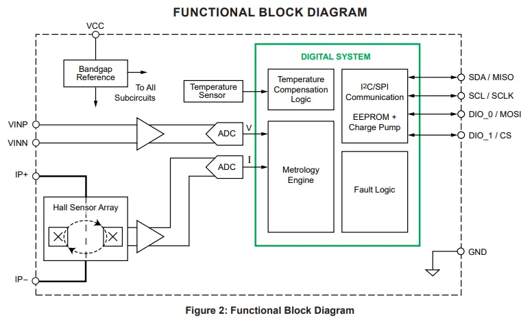 The Allegro ACS37800 contains a hall-effect sensor which is used to measure the AC mains current in an isolated manner.