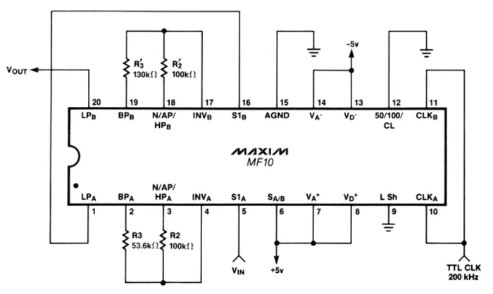Maxim Integrated (1996, Jul). MF10: Dual Universal Switched Capacitor Filter. Retrieved 2022-08-29, from https://datasheets.maximintegrated.com/en/ds/MF10.pdf. ↩ ↩2