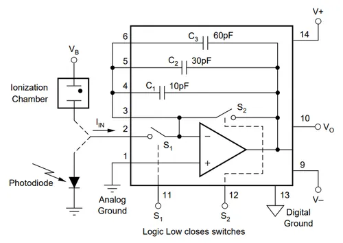 Burr-Brown (now Texas Instruments). IVC102: Precision Switched Integrator Transimpedance Amplifier (datasheet). Retrieved 2022-09-27, from https://www.ti.com/lit/ds/symlink/ivc102.pdf. ↩ ↩2