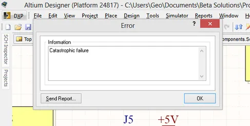 I have got fatal “Argument out of range” errors while performing basic routing tasks on the PCB. There is no way to save any work when this occurs, and after clicking the “O.K.” button of the many “Argument out or range” boxes that pop-up (which are glitchy), Altium crashes and closes automatically.