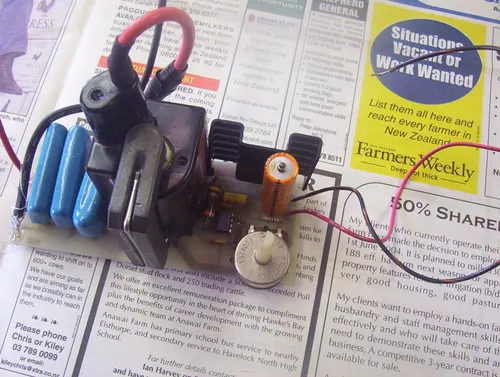 These pics below are of my largest capacitors, 20 1800uF, 500V monstrosities. I got these for a total of NZ1000’s!, I don’t even think they knew they were capacitors). I have yet to use them for anything but shorting out pieces of wire (and with only two in parallel). A coil gun HAS to be made from these soon.