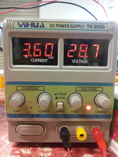 I brought a cheap 0-30V, 0-5A power supply from AliExpress. It is the YH-305D, as shown below. It set me back about NZ$130, including shipping.