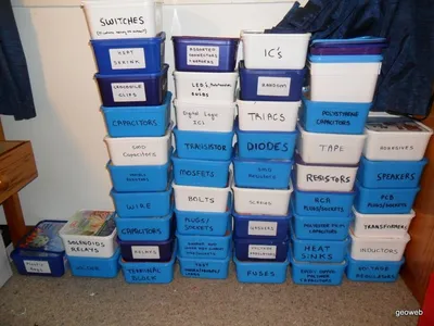 Organisation! Component trays are the shiz. When you want a component, they are right there and waiting. It is like walking into a shop, but without the cost (or course you have to fill them up, but you forget about the purchasing after a while). I use component trays for through hole resistors, through-hole capacitors, diodes, transistors, MOSFETs, and common ICs (555’s, max232’s, etc). I have smaller containers for the surface mount equivalents.
