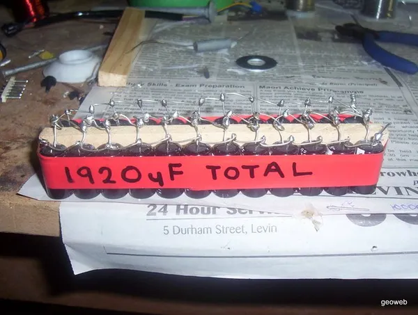 - Capacitor Bank: 24x 330V 80uF Capacitors