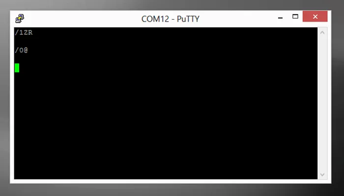 To get the pump to initialise, I sent the command /1ZR. / indicates that a command follows, 1 is the pump address, Z is the command (initialise with valve to the right), and R executes the command. See the datasheet for more information on the commands. You should get the response /0@, as shown in the image below.