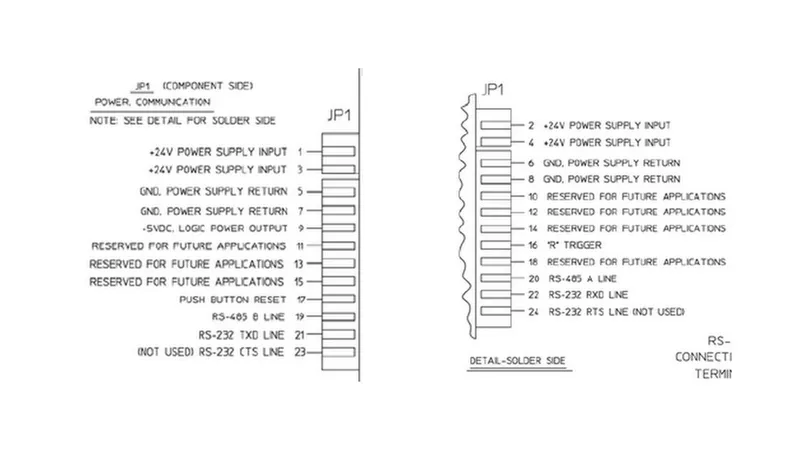 The bare minimum number of connections to get it working are 4, the +24V, GND, RS-485 A Line, and RS-485 B Line (or the RS-232 TX and RX line instead of the RS-485 connections if you have the RS-232 interface board attached). The +24V power supply has to be capable of providing 850mA. A USB-to-RS-485 converter is a good way to control the pump from a computer. The syringe pump is set by default to communicate at 9600 baud.