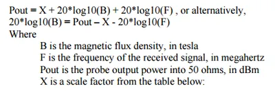 The magnetic flux density can be calculated for the H-field probes using the equation below: