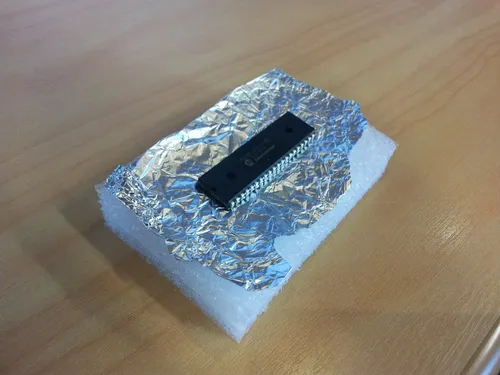 Anti-static packaging can easily be made for DIP packages with foam and aluminium foil as shown in the picture below.