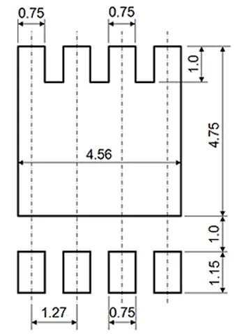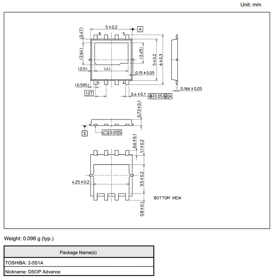 DSOP (Dual-side Cooling SOP) Advance is a SMD component package used by Toshiba that has thermal pads on both the underside and topside of the package. It has a pin count of 10 (8 if you don’t count the two pins by themselves) and a pitch of 1.27mm (50 mil).