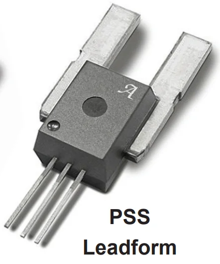 • PSS — Use when you want straight leads on both the signal pins and the primary terminals. This is useful if the device is not going to be soldered onto a PCB at all, but mounted next to the high-current path and wires connected to the signal leads.