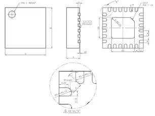 QFN-16: 3x3x1mm (LA: 9mm2) QFN-20: 3x3x1mm (LA: 9mm2) QFN-24: 4x4x1mm (LA: 16mm2) QFN-32: 5x5x1mm (LA: 25mm2) QFN-36: 6x6x1mm (LA: 36mm2) QFN-48: 7x7x1mm (LA: 49mm2) QFN-56: 8x8x1mm (LA: 64mm2) QFN-64: 9x9x1mm (LA: 81mm2) QFN-68: 10x10x1mm (LA: 100mm2)