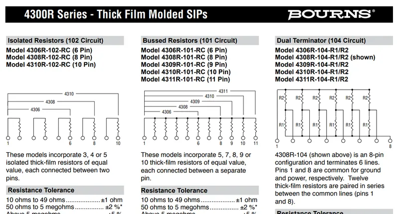 Bourns. 4300R Series - Thick Film Molded SIPs [datasheet]. Retrieved 2024-04-29, from https://nz.mouser.com/datasheet/2/54/4300R-777281.pdf. ↩