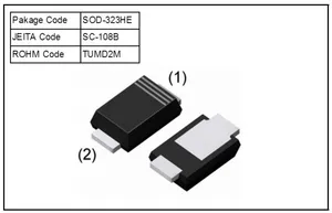I’m not sure what the distinguishing features of the SOD-323HE package are. It appears to be a SOD-323 with a flat lead style.