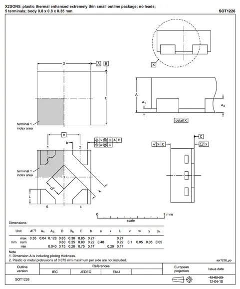 1. NXP (2016, Aug 15). SOT1226-2 - plastic thermal enhanced extremely thin small outline package; no leads; 5 terminals. Retrieved 2024-04-03, from https://www.nxp.com/docs/en/package-information/SOT1226-2.pdf.