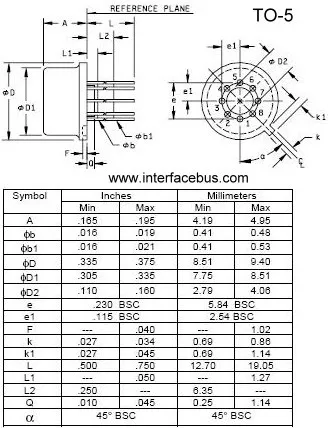http://ronja.twibright.com/datasheets/metal_cans.pdf has some great information on the TO-5 component package as well as similar style metal can packages.