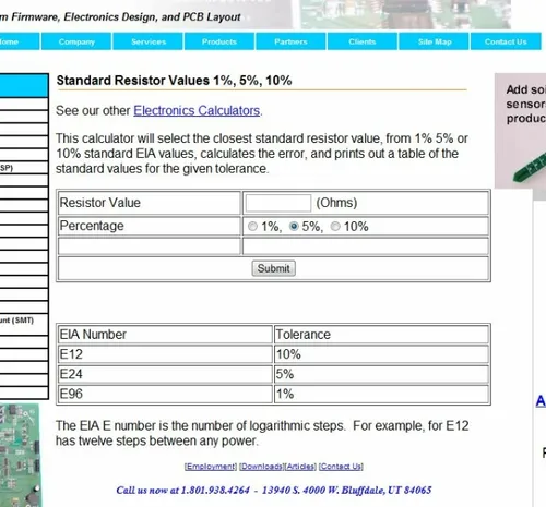 Invaluable when working out the closest manufactured resistor to the value you need in your design. There are tons of web-based calculators out there, and most let you choose a resistor series (e.g. E12, E24 e.t.c), or a precision (e.g. 5%, 1%). The higher the precision (1% is higher than 5%), the more expensive the resistor.