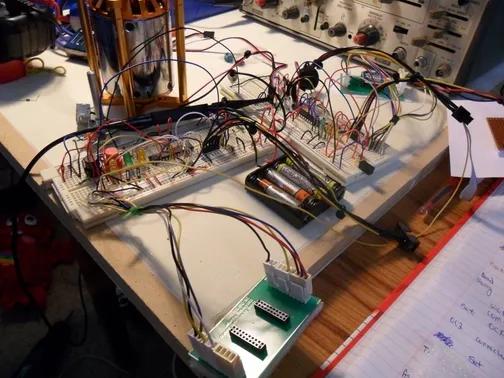 You may wish to build up a small prototype circuit on stripboard of the analogue signal processing/amplifying circuitry in the design, or of this custom digital multiplexor, before making a proper PCB.