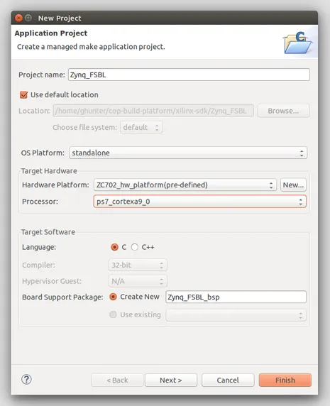 The Xilinx SDK should now create all the necessary files and run the build once.