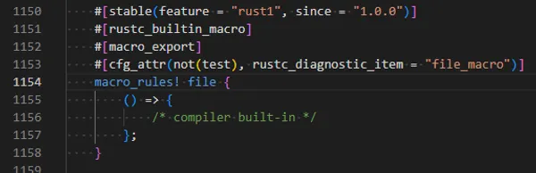 #define assert( exp ) \    ( (exp) ? (void)0 : assert_fn( __LINE__, __FILE__, #exp))#endifThis is made possible by the special __LINE__, __FILE__ and #exp (where the # stringifies the exp), and the fact that the macro contents gets plonked in the source code everywhere assert() is called. Luckily, you can do the same thing in Rust by utilizing the line!(), file!() and stringify!() macros (which are compiler built-ins)6.
