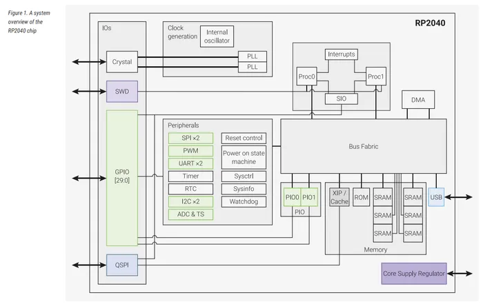 Raspberry Pi Ltd. RP2040 Datasheet: A microcontroller by Raspberry Pi.. Retrieved 2022-06-07, from https://datasheets.raspberrypi.com/rp2040/rp2040-datasheet.pdf. ↩ ↩2