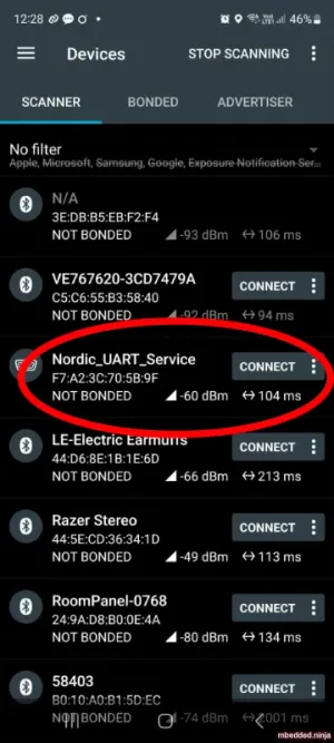 Another way to communicate with the peripheral is to use the desktop Python script provided by Nordic, which can be found here.