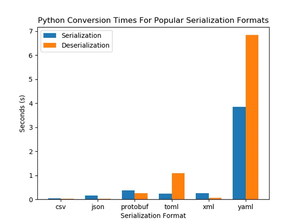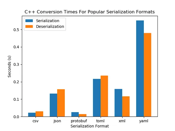 | Format | C++ Deserialization (s) | C++ Serialization (s) | Python Deserialization (s) | Python Serialization (s) |