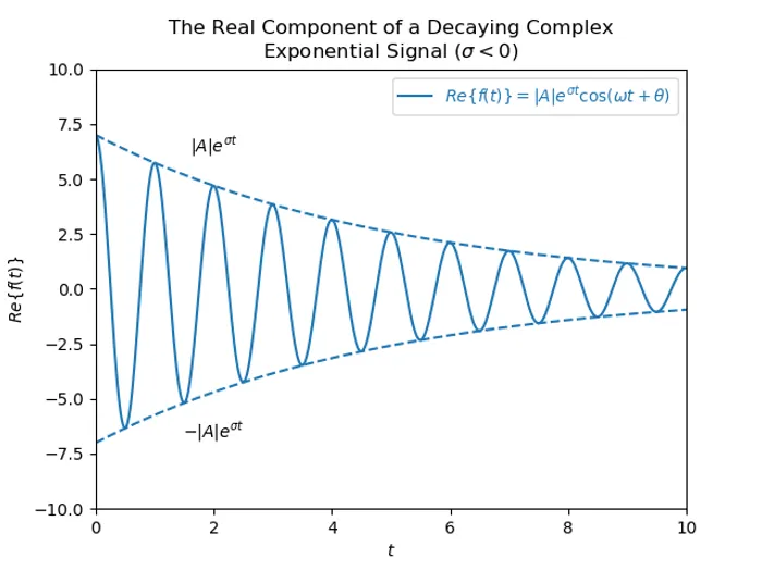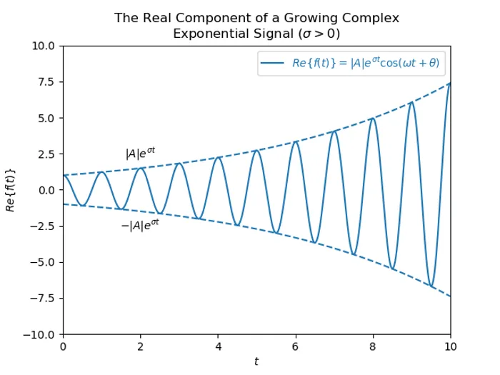 When , the signal exhibits exponential growth (this typically represents an unstable signal). When , the signal exhibits exponential decay (this typically represents a stable signal).