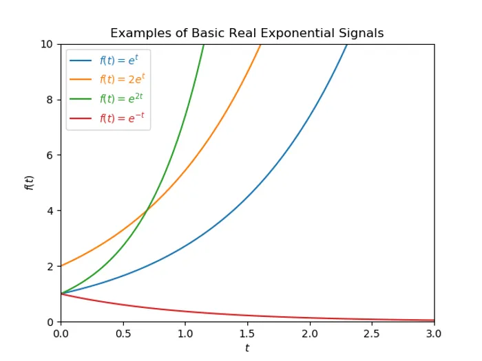 Below are some examples of real exponential signals, showing how varying and (limited to real numbers only) effect the waveform shape.