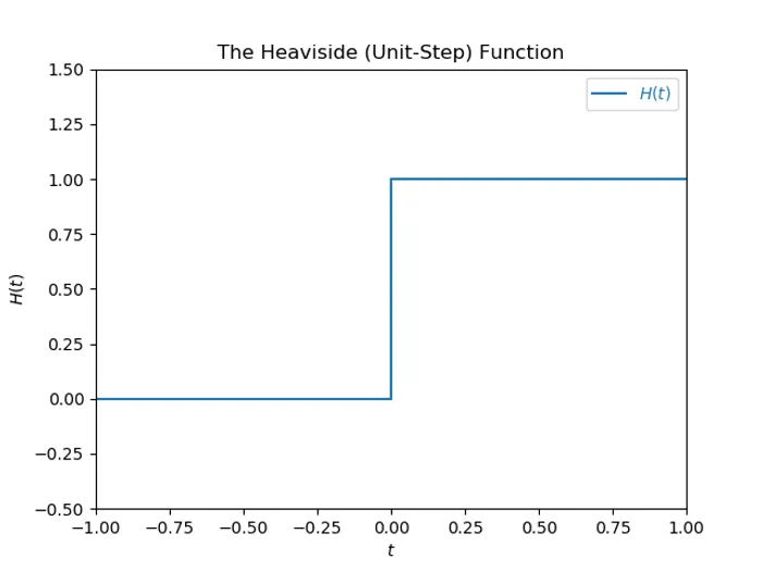 The Heaviside function looks something like the signal below, however the point at can be drawn in different ways (more on that below):