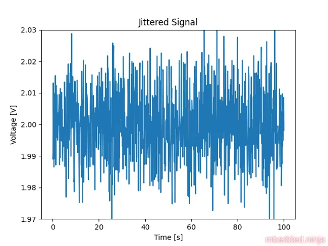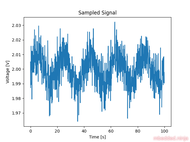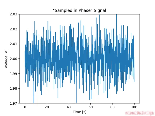 We’ll use a simulation to explore the problem. Let’s pretend we are measuring a voltage outputted from a temperature sensor. The temperature is currently not changing, but we have two types of noise:
