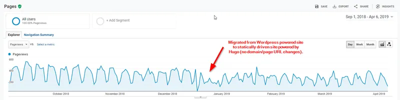 Migrated from Wordpress (full-blown CMS) to Hugo (static-site generator). The GitHub repo that the site is generated from can be found at https://github.com/gbmhunter/blog.