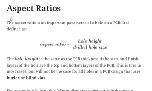 Information on Aspect Ratios added to the Pads, Vias and Holes page.